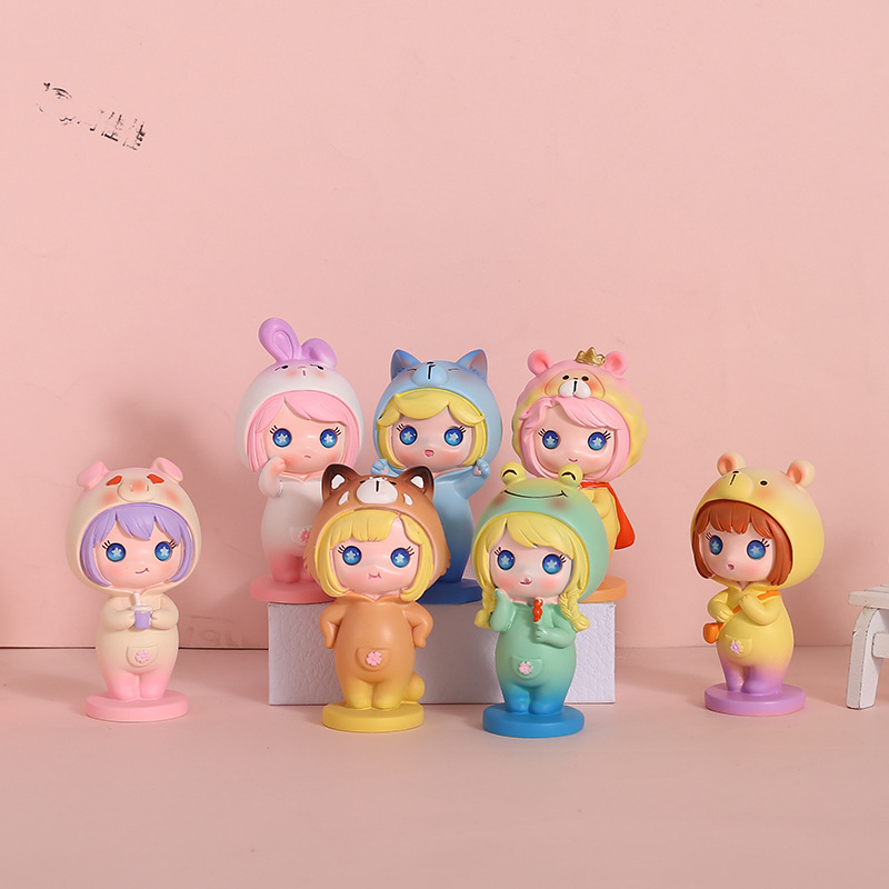 可爱甜品女孩盲盒手办批发家居桌面小摆件树脂工艺品创意生日礼物