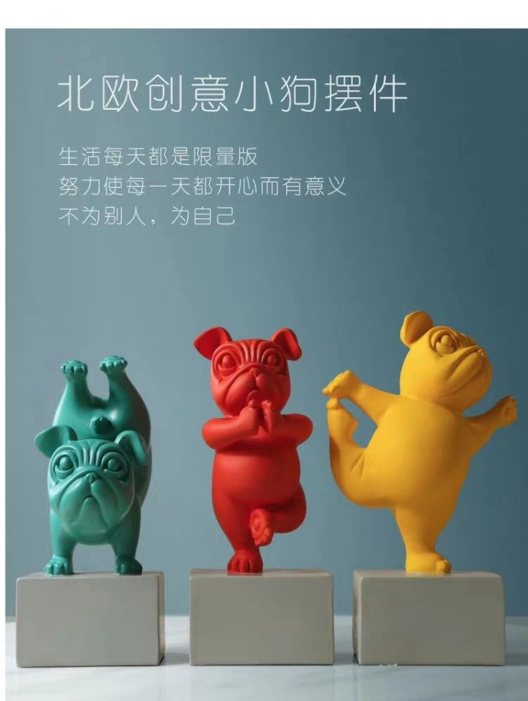 瑜伽法斗狗创意小狗树脂桌面摆件家居客厅工艺装饰品摆件一件代发