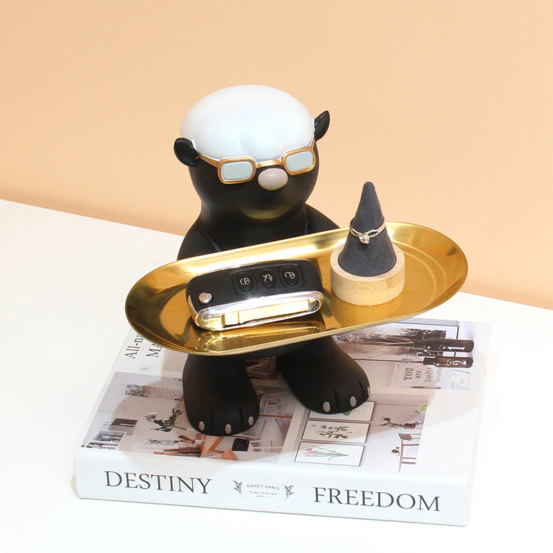 蜜獾公仔个性平头哥现代简约进门玄关钥匙收纳摆件客厅托盘装饰品
