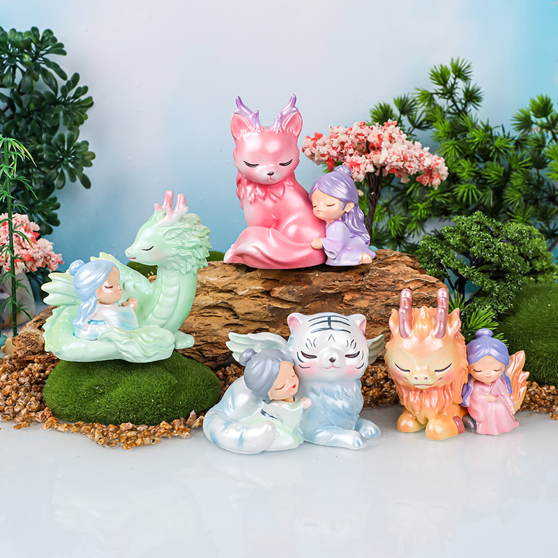 上古神兽传说盲盒潮玩创意公仔手办国潮礼品树脂桌面装饰小摆件