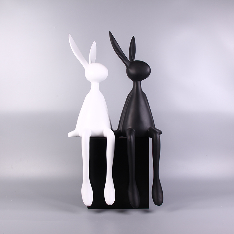 跨境创意几何兔子动物小摆件北欧轻奢简约酒柜桌面摆饰树脂工艺品