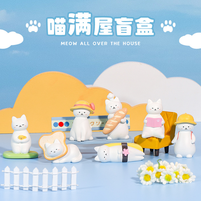 喵满屋盲盒公仔手办日系可爱卡通猫咪树脂桌面小摆件儿童毕业礼物