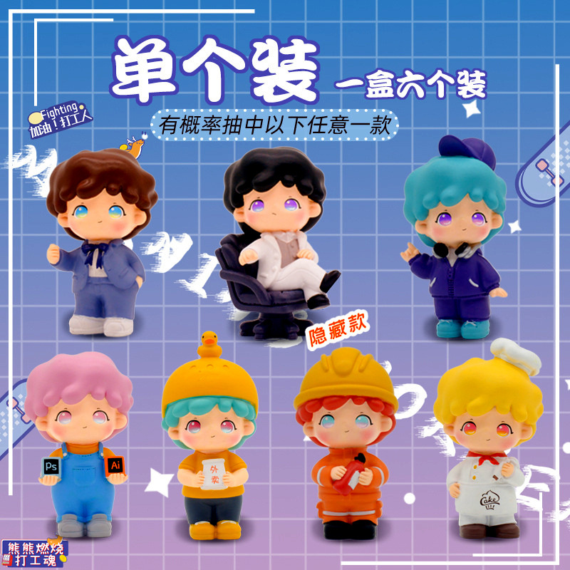 日系打工人潮玩盲盒玩偶手办模型公仔创意家居汽车载装饰摆件周边